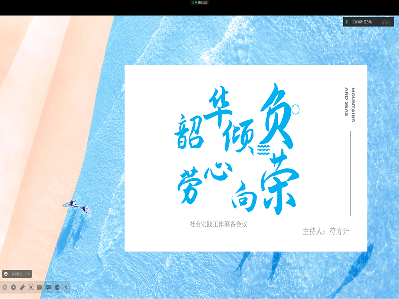 1月3日下午四时,新利体育“韶华倾负,劳心向荣”社会实践队于线上召开工作筹备会议。本次会议旨在明确社会实践的目标和工作流程、分配工作任务及探讨社会实践相关问题。新利体育“韶华倾负,劳心向荣”社会实践队队长符方开主持本次会议,社会实践队全体成员均按时参会。