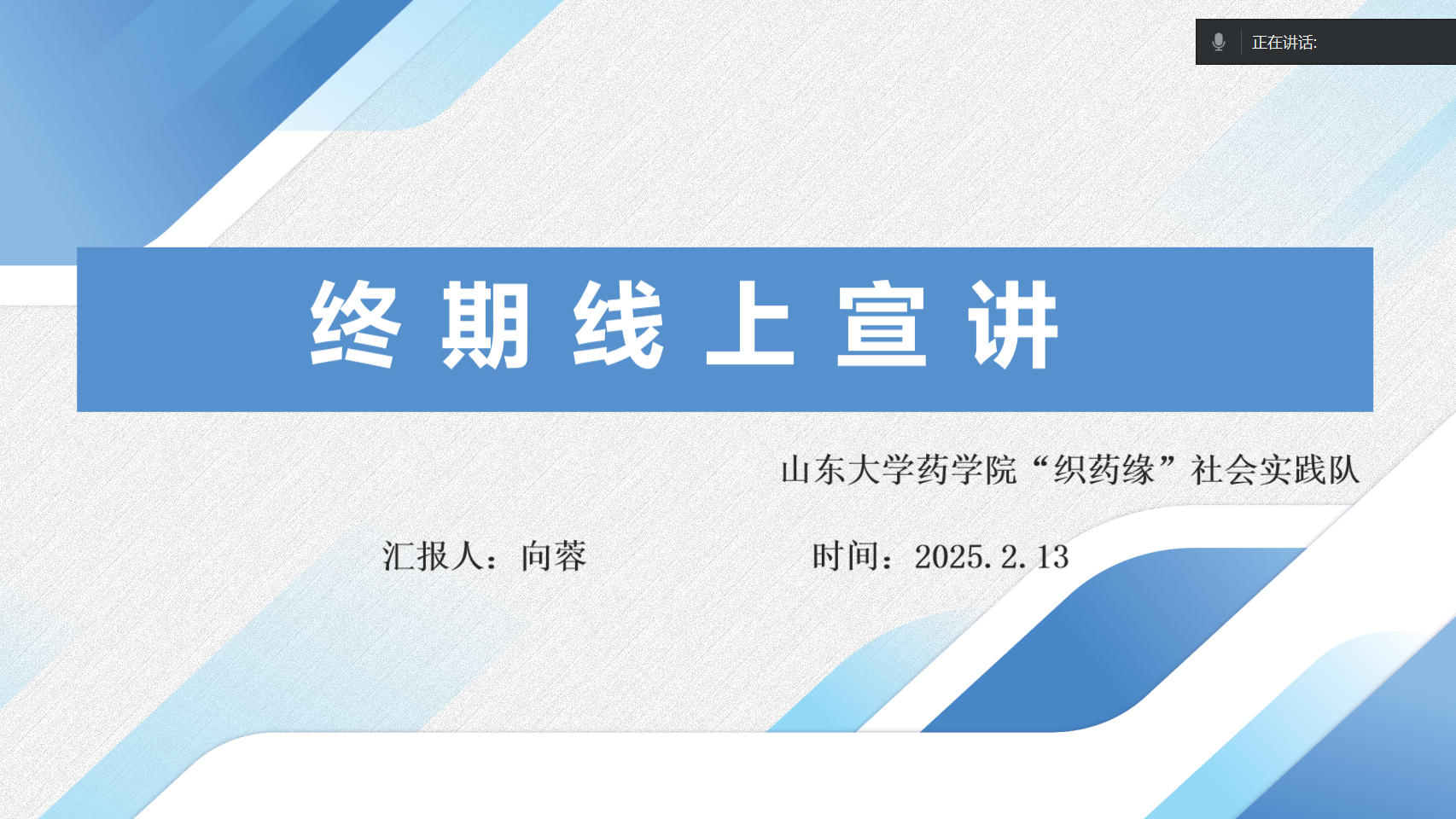 为整理总结本次社会实践的成果,新利体育“织药缘”社会实践队于2月13日晚20时开展了线上终期总结会议。本次会议由实践队队长向蓉主持,全体实践队成员参加。