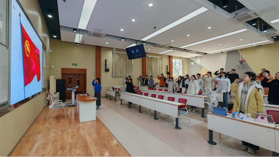 在优秀团员民主评议环节,全体团员秉持客观公正、实事求是的原则,按照个人自评、团员互评、民主测评的程序,进行了无记名投票。团员们认真填写测评表,对每位团员在思想道德、学习成绩、社会实践等方面的表现进行评价。最后,在李冬焱的带领下,全体团员面向团旗进行了庄严宣誓,重温了入团誓词。