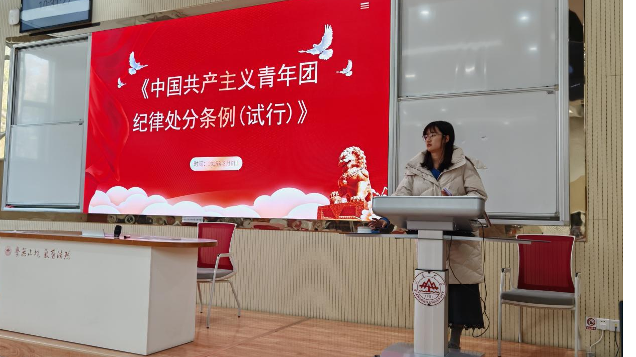 班会结束后,团组织生活会在李冬焱的组织下有序开展。首先,李冬焱带领全体团员进行团纪学习。她结合实际案例,对《中国共产主义青年团纪律处分条例(试行)》进行了详细解读,强调了团纪的重要性,要求每位团员严格遵守团的纪律,履行团员义务,在学习和生活中发挥模范带头作用。团员们认真聆听,深刻领悟,进一步明确了自身的责任与使命。