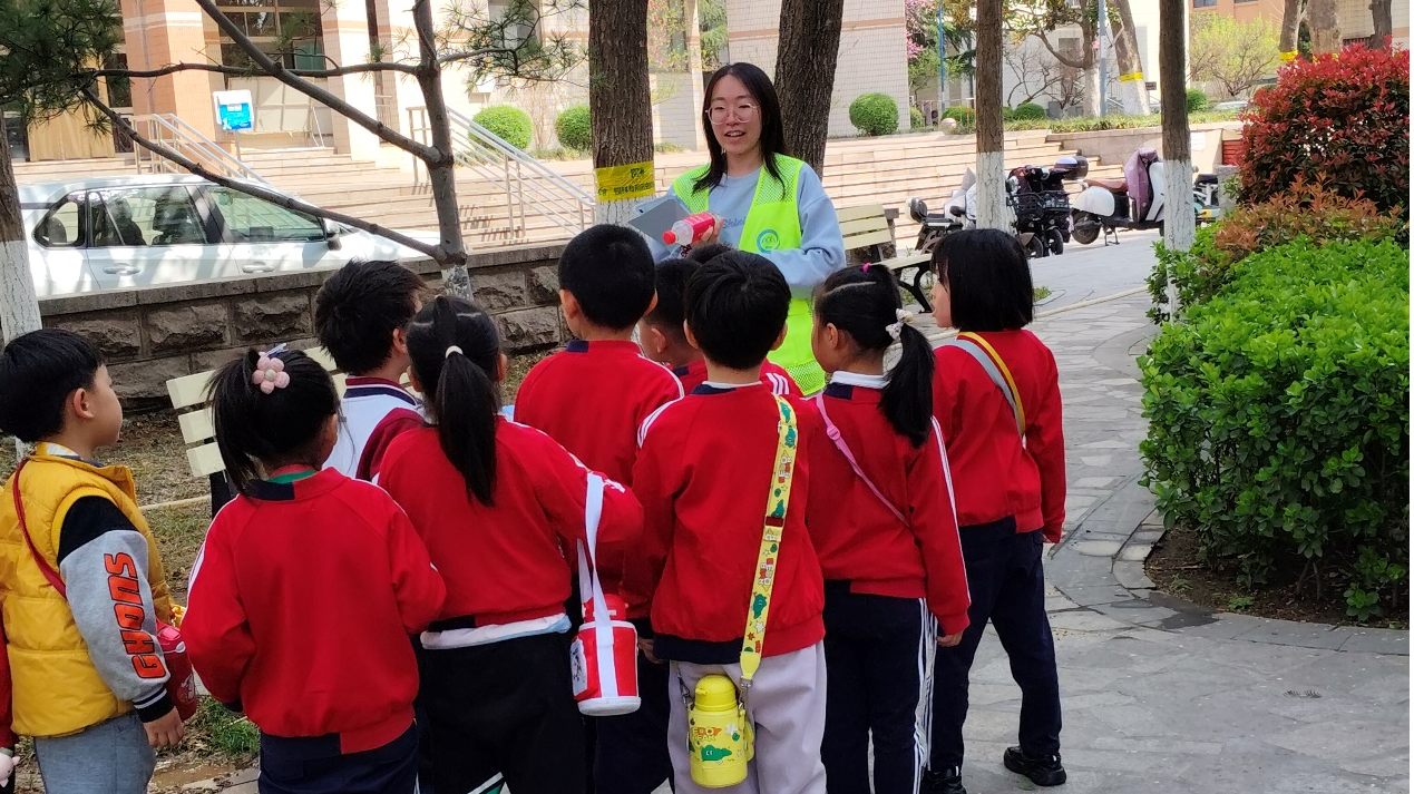 活动于14时正式开始。首先,志愿者团队引导幼儿沿校区依次观察银杏、连翘、樱花、玉兰花、石榴、垂丝海棠、牡丹等目标植物。活动期间,志愿者在食堂西侧,针对银杏叶片,借助图示资料,用通俗语言讲解其所含黄酮类化合物及萜类内酯的药用机理,阐明在改善脑部血液循环、神经保护方面的临床应用。