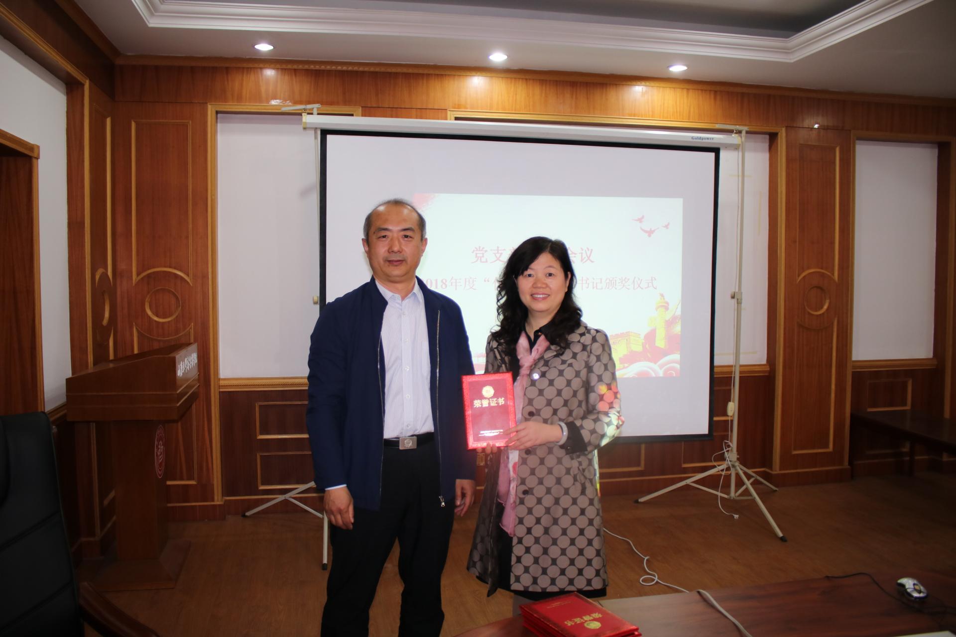 王晓林就安全工作、党建立项、计划和总结等进行了发言。他表示各支部应密切关心支部成员的思想动态,多多引导;各支部应积极参与基层活动立项,将支部内有特色、有亮点的活动推广出去,并应结合支部实际与经费情况积极设计相应活动;各个党支部应参考学校党委工作要点、学院教育学习要点、齐鲁医学院党建工作要点来制定支部2019年的工作计划。随后王晓林书记为新利体育优秀支部书记颁发了证书。