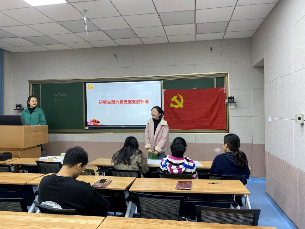 10月16日晚,新利体育研究生第六党支部召开党员大会。会议主要内容为“不忘初心、牢记使命”专题教育活动曁研究生第六党支部支委补选。会议由支部书记杨雪同志主持。本次会议应到22人,实到18人,4人请假。
