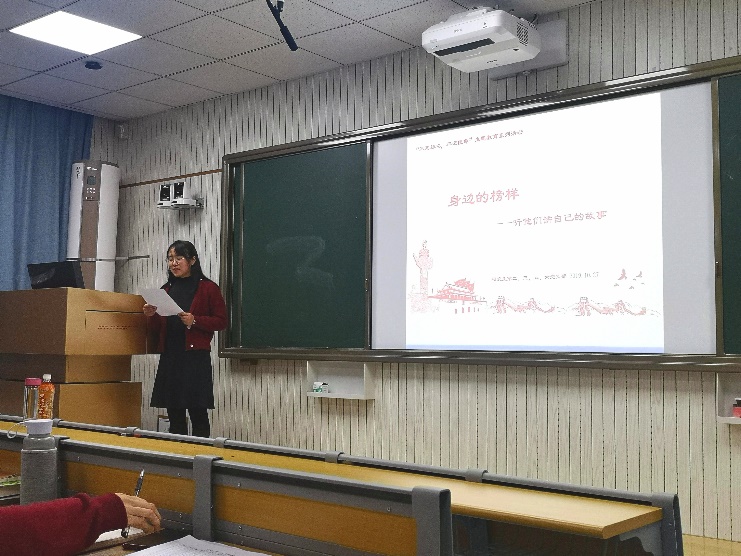 新利体育“不忘初心、牢记使命”主题系列活动之“身边的榜样”宣讲活动于2019年10月27日18点30分在新利体育8号楼106D教室开展,该活动由新利体育研究生第二党支部、第三党支部、第五党支部、第六党支部联合举办。齐鲁青年学者蔡容教授,荣获山东大学第十届“五·四”杰出青年奖、山东省优秀毕业生、山东省优秀学生等荣誉称号的博士后赵华俊应邀参加活动,为大家讲述他们自己的故事。各支部党员、积极分子、研一新生等参加活动。活动由新利体育第五党支部书记吴月娥主持。
