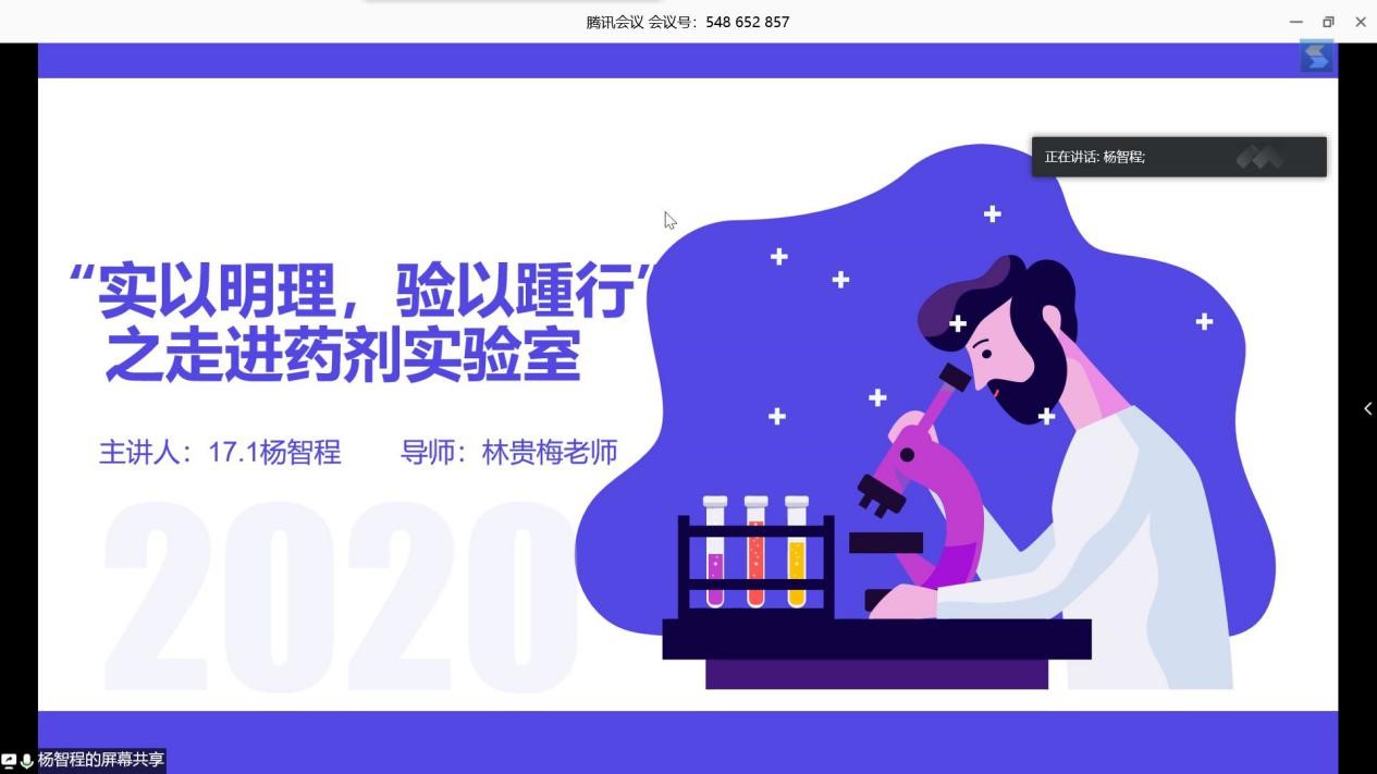 本次活动邀请了三位活动嘉宾,分别为2017级本科生孙鑫、2017级本科生杨智程和2019级研究生赵春乾,他们结合各自加入的实验室具体情况展开介绍。孙鑫对新药药理研究所展开介绍,他首先介绍了什么是药理学,并以“淫羊藿苷对非小细胞肺癌上皮-间质转化的作用研究”课题为例简述了进入药理研究所需要掌握的专业技能,研究所内招收本科生的导师,如何根据自身实际选择合适的实验室以及自己在实验室的体验和心得等四方面内容,帮助未进入实验室的同学做全方位准备。杨智程结合自己所在的药剂实验室,介绍了药物制剂过程的重要性,总结自己“脂质体实现‘立体抗癌’”、“微球缓控释技术”和“微流控技术”的研究经历并分享了实验室的日常小技巧。赵春乾介绍了生化与生物技术研究所的基本情况和导师的研究方向,随后分享了在实验室做细胞实验的必要准备,最后讲述了自己对新人进入实验室的小贴士。在最后的答疑环节中,同学们积极地在讨论区提出关于进入实验室的问题,嘉宾对同学们的疑问进行了耐心细致的解答。