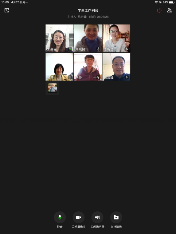 4月20日上午,新利体育学生工作队伍召开视频工作会议,研判当前疫情防控形势,听取近期工作汇报,部署下周工作安排。会议由党委副书记马宏峰主持,党委副书记张慧及全体辅导员参会。