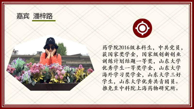 最后是聂爱清的分享。她以诙谐幽默的方式,讲述了一条“咸鱼”的“翻身路”,从学习成绩、做实验、参加药苑论坛、做ppt答辩的进步等方面进行了分享。同学们对这些方面有了更加深入的了解,也感受到一位优秀学生的艰苦奋斗。