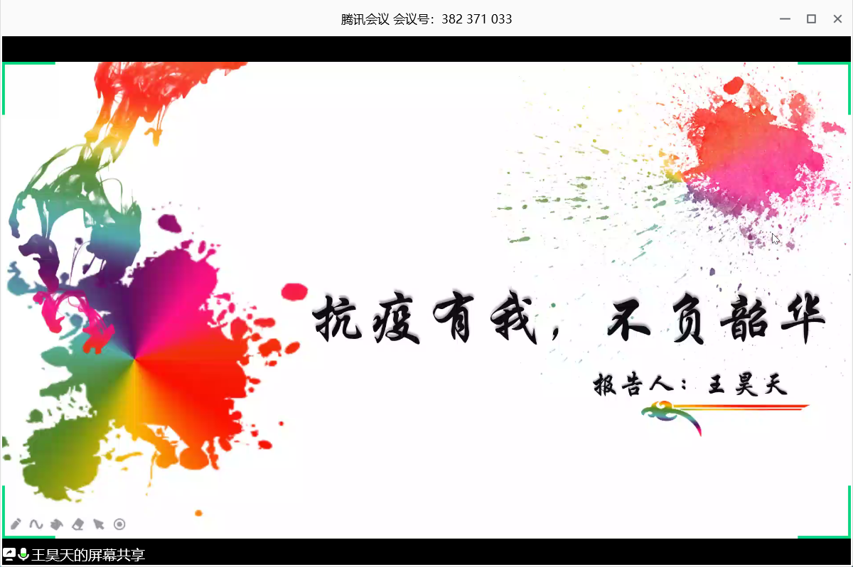 王昊天的分享更侧重于疫情期间的抗疫故事,从“逆风而行”“抗疫有我”“心灵沉淀”三个部分展开,分享了中国唯一代表向世界青年分享战疫经验的山东姑娘王琇琨的故事和她自己的战疫故事及感悟体会,鼓励大家能不负韶华,贡献自己的青春力量。