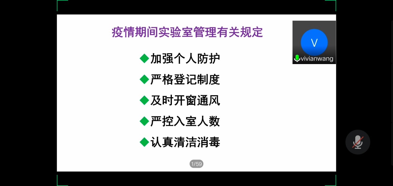 院长助理王海钠讲解了科研实验室管理的相关内容,要求同学们要牢固树立安全意识,遵守实验室管理规定和实验操作规范,严格登记“实验室疫情防控登记台账”,掌握实验室疫情防控应急处理流程。