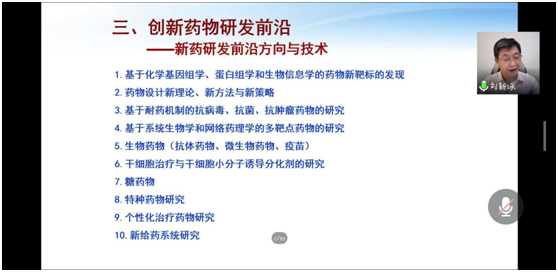 7月1日,新利体育“药物领域前沿发展与关键技术”研究生暑期学校第一讲采取线上形式举办。山东大学校聘二级岗教授、山东省医学领军人才、现任新利体育院长、药物化学研究所所长、无机化学教研室主任刘新泳围绕“医药产业发展现状与新药研发的前沿”展开专题讲座。