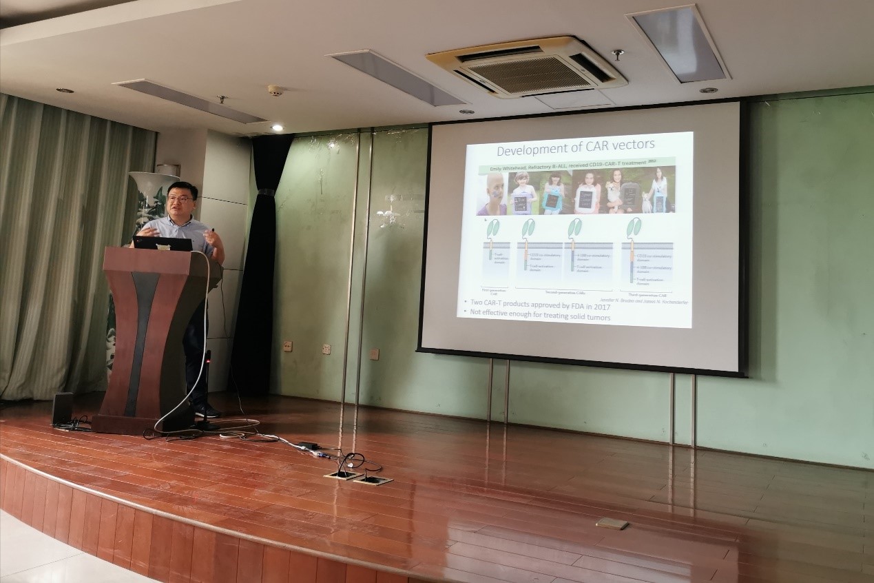 李鹏作了题为“针对实体瘤的CAR-T研究”的报告,主要介绍了他和研究团队在提高CAR-T的疗效特别是其对实体瘤的作用中所进行了探索,阐述了新型肿瘤免疫治疗策略的研究成果。