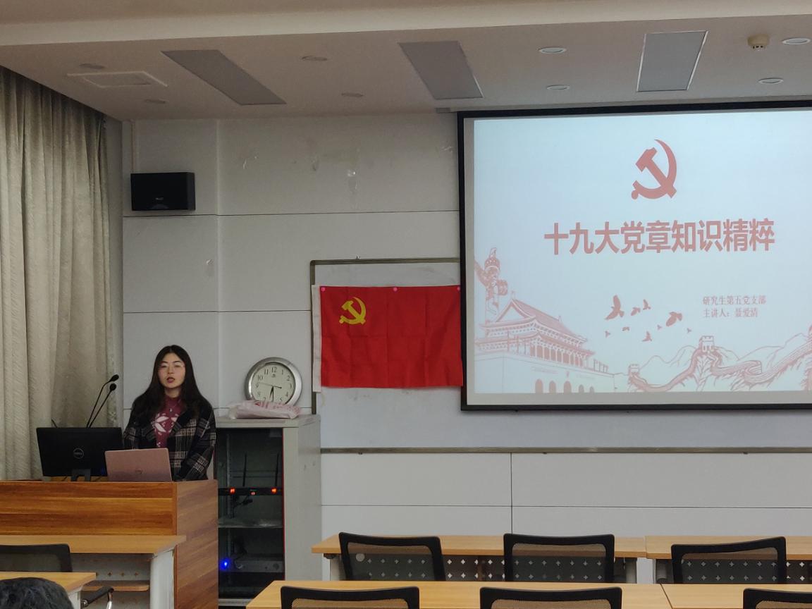 近日,新利体育研究生第五党支部在7104开展党章学习活动,旨在贯彻落实习近平新时代中国特色社会主义思想,更好地促进党员不断学习党史、党章。本次活动由党支部书记聂爱清同志主持,全体党员参加。