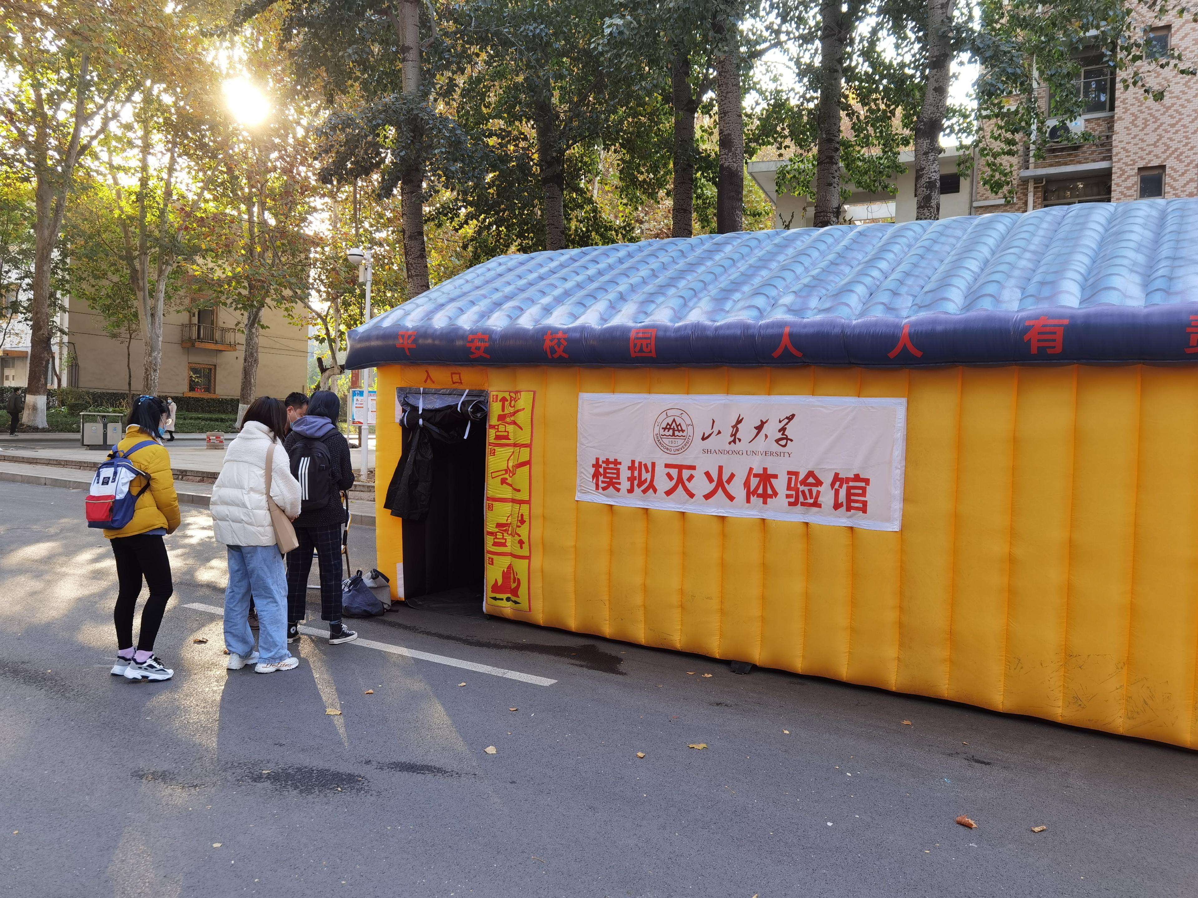 本次消防安全演练包括模拟灭火和模拟烟雾逃生两项。在模拟灭火项目的现场,同学们在认真学习灭火器的使用方法和操作技巧后,立刻投身到实践中,沉着操作灭火器顺利完成了模拟灭火任务。在模拟烟雾逃生项目的现场,同学们在志愿者的引导下用湿毛巾或衣物紧紧捂住口鼻,弯腰俯身进入烟雾模拟室,并且借助室内“安全出口”指示灯找到出口,迅速完成了烟雾逃生任务。在本次消防安全演练的过程中,同学们态度认真、沉着冷静、反应敏捷,出色地完成了各项任务。
