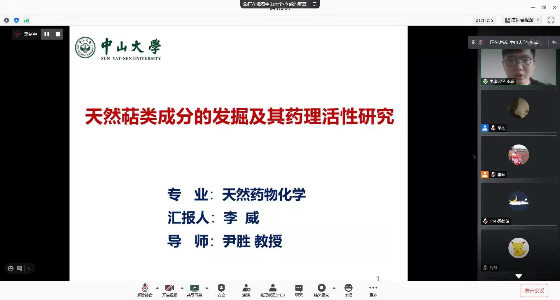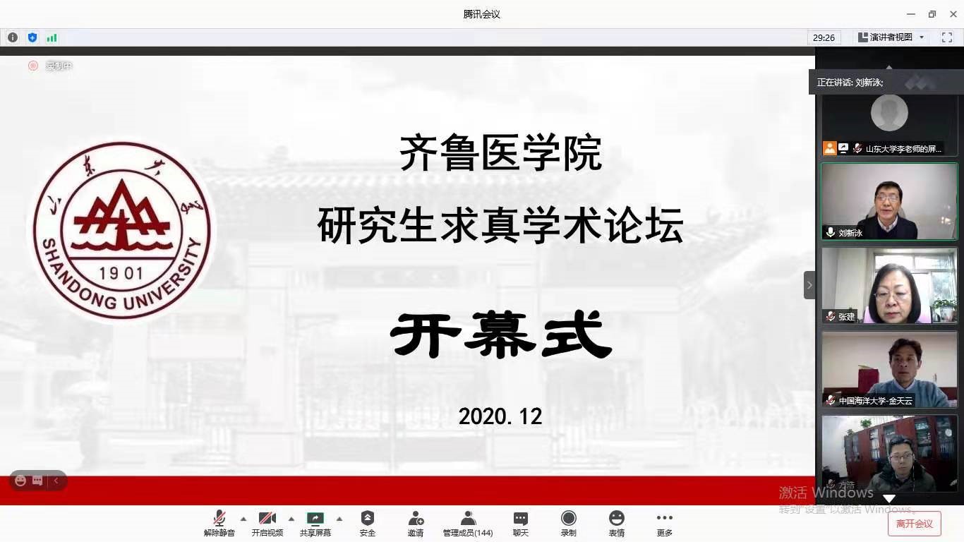 12月4日-5日,新利体育成功举办齐鲁医学院研究生求真学术论坛(药学学科),论坛活动采用线上方式举行。来自清华大学、中国科学院上海药物研究所、复旦大学、南开大学、中我校学、中国海洋大学、马斯特里赫特大学、中国科学技术大学、中国海洋大学的10名博士研究生和新利体育的8名博士研究生应邀作专题学术报告。