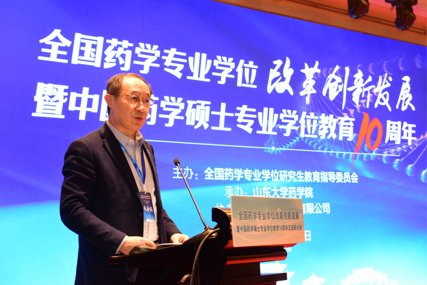 2020年12月11日,全国药学专业学位改革创新发展暨中国药学硕士专业学位教育10周年交流研讨会在济南召开,会议由全国药学专业学位研究生教育指导委员会主办,山东大学承办。全国药学专业学位研究生教育指导委员会、全国80余家药学专业学位研究生培养单位代表、专家教授及行业企业代表等共200余人参加会议。开幕式由全国药学专业学位研究生教育指导委员会副主任委员、中国药科大学副校长陆涛主持。