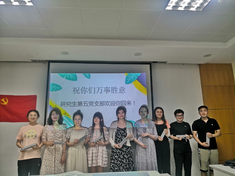 毕业生党员首先观看了主题为“党支部毕业•纪”的幻灯片,带领党员回顾了党员一起参加的各种党日活动、志愿服务、谈心谈话等。岁月如梭,往事如歌,过去的点滴融进一页页幻灯片,即将离校的党员将灿烂的青春写在药学科研的大地上。党支部非毕业生党员为每一位即将离校的党员都准备了毕业寄语。朴实真挚的赠言寄托了他们对各位毕业生发自内心的祝福,深情的寄语让不少毕业生党员眼含泪光。最后,党支部为每位毕业生党员送上了精心准备的毕业纪念礼物。