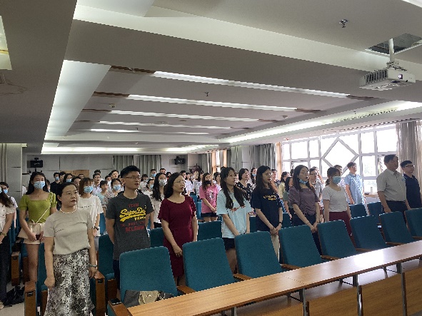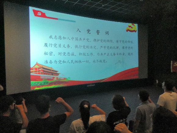 学院140名研究生党员开展庆祝七一观影主题党日活动,集体观看历史剧情电影《1921》,重温入党誓词,向中国共产党致敬。