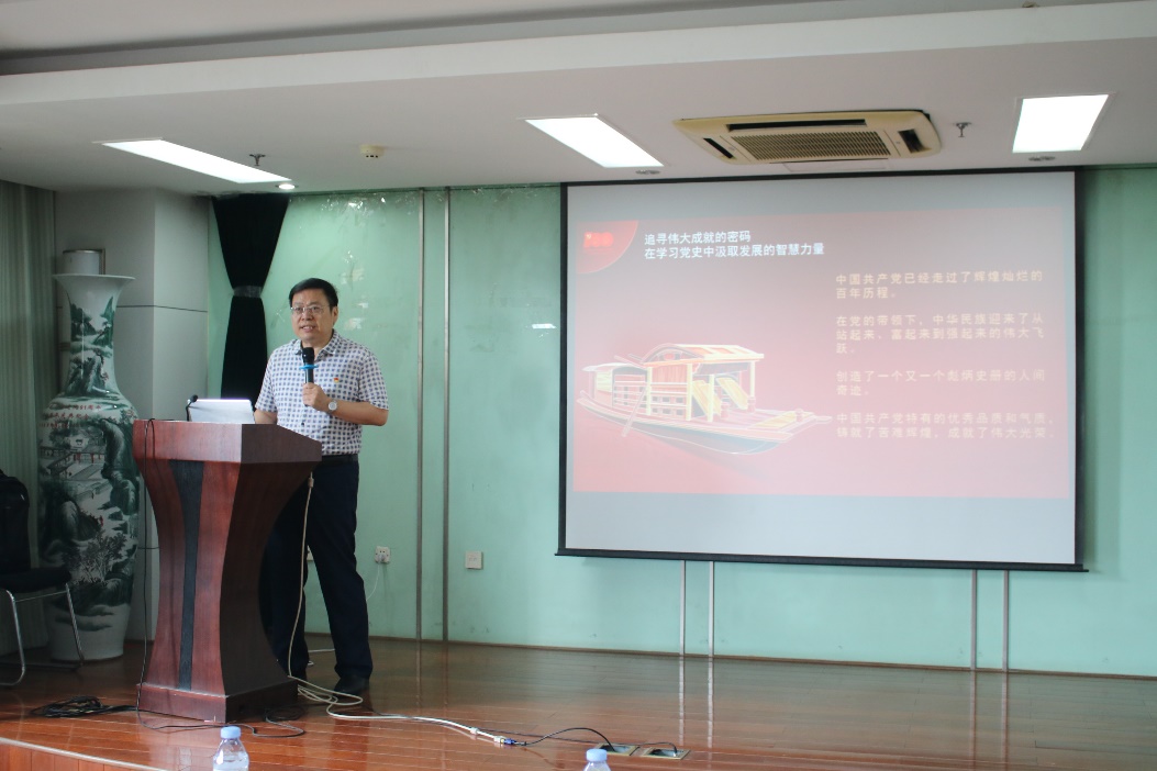 7月12日上午,按照学校党史学习教育工作安排,新利体育党委书记王秋生为全院教职工讲授主题为“追寻伟大成就的密码,在学习党史中汲取发展的智慧力量”的专题党课。新利体育全体教职工参加活动。