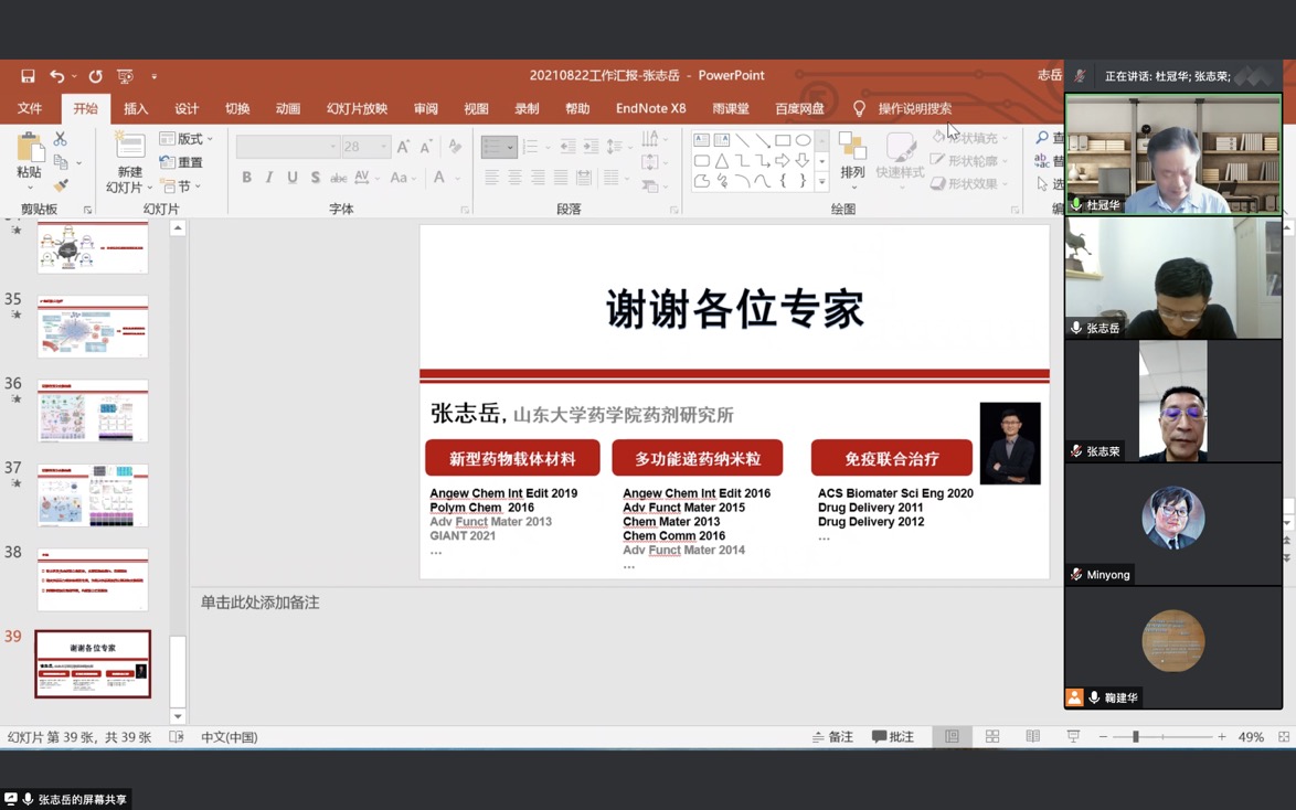 8月22日-23日,新利体育开展了为期两天的青年学术交流托举沙龙,新利体育领导班子出席活动,学院共24位齐鲁青年学者和青年教师代表参加活动并做学术汇报。会议邀请了中国医学科学院杜冠华研究员、四川大学张志荣教授、云南大学罗晓东教授、厦门大学邓贤明教授、海南大学罗海彬教授等国内知名专家在线出席活动,并对老师们的科研思路进行指导。新利体育院长、常务副院长方浩教授、副院长李敏勇教授先后主持了会议。