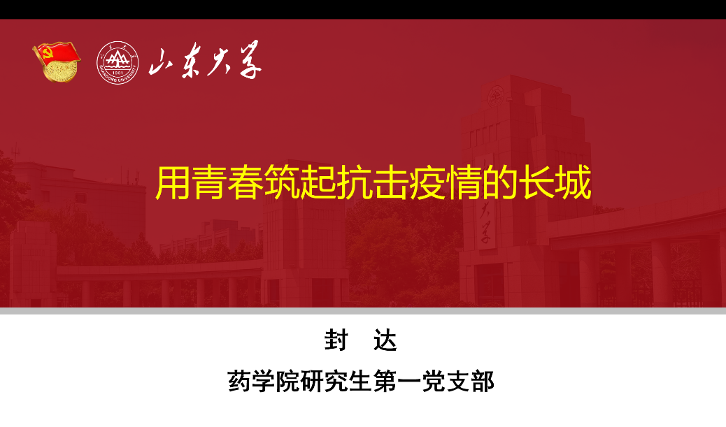 近日,山东省委教育工委发文公布全省高校“我来讲党课”优秀党课名单,评选确定优秀党课80部。我院研究生第一党支部报送的《用青春筑起抗击疫情的长城》(主讲人:封达)党课从全省各高校报送的400部党课中脱颖而出,获评优秀党课。