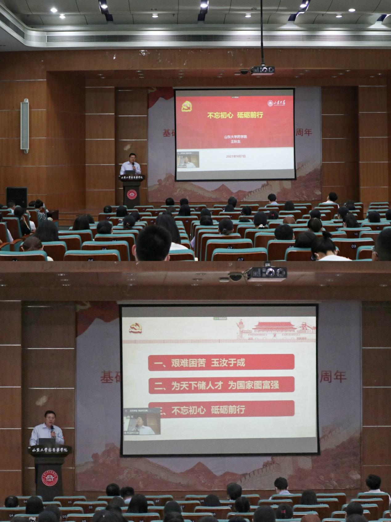 王秋生书记以“不忘初心,砥砺前行”为主题,介绍了中国共产党从艰苦奋斗的创建之初走向新世纪伟大复兴的光辉历史以及学校和学院从创建到壮大的红色足迹,希望同学们作为新时代的我校人要有奉献精神和爱国精神,将个人与国家的命运紧密相连,为祖国医药事业发展贡献力量。