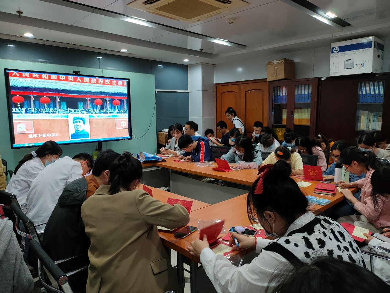 支部成员共同观看了由中共中央宣传部、中央党史和文献研究院等单位联合摄制的大型文献专题片《敢教日月换新天》第六集《建国大业》。视频讲述了人民解放军转入战略反攻后,中共中央开始擘画新中国的蓝图。在中国共产党的领导下,确定了新中国的国体政体以及首都、国旗、国歌等,并继续进行解放战争和土地改革,实现了人民当家作主,使中国面貌焕然一新。在视频接近尾声时,支部成员一边听着纪录片主题曲《终达所愿》一边填写政治生日贺卡,回顾入党初心,坚定心中信念。最后,新生党员依次发言介绍自己家乡、本科院校等基本情况,支部书记唐凯俊介绍了支部成员构成,支部成员对新生党员的加入表示热烈欢迎,希望新党员同志尽快融入新的支部生活。