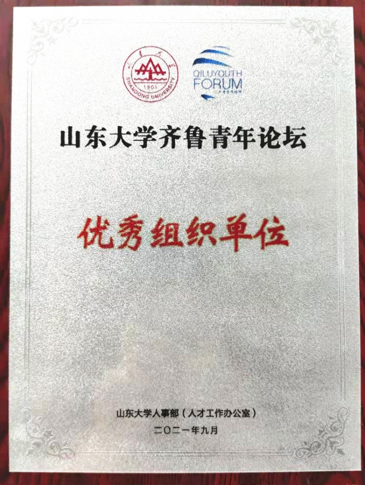 近日,在山东大学齐鲁青年论坛优秀组织单位的评选中,新利体育因在第一届至第五届齐鲁青年论坛组织工作中表现突出,依托齐鲁青年论坛引进人才效果好、数量多、水平高,被评为山东大学齐鲁青年论坛优秀组织单位。