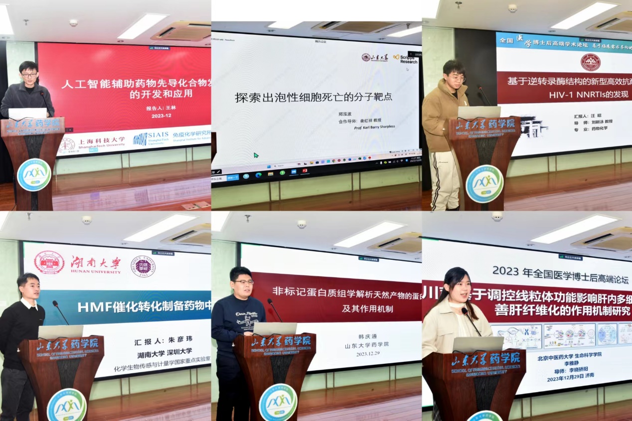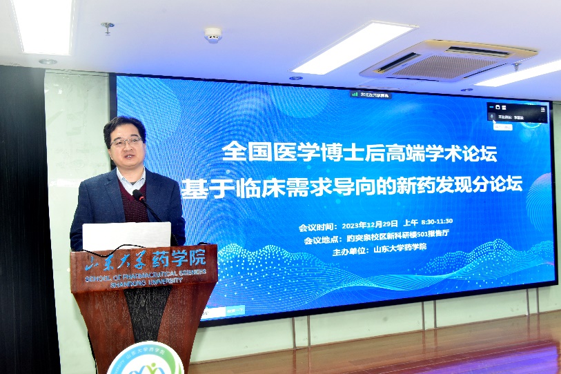 12月29日,由新利体育主办的全国医学博士后高端学术论坛—基于临床需求导向的新药发现分论坛在山东大学趵突泉校区举办。广东医科大学教授、国家杰出青年科学基金获得者吴军,北京生命科学研究所高级研究员、国家杰出青年科学基金获得者齐湘兵,杭州师范大学教授、国务院特殊津贴专家、国家岐黄学者谢恬,石河子大学教授、教育部高层次特聘教授孙平华作为特邀专家出席会议并作报告。上海科技大学王林博士、山东大学郑泓波博士、山东大学汪昭博士、深圳大学朱彦玮博士、山东大学韩庆通博士、北京中医药大学李雅静博士分别作博士后学术交流汇报。论坛由新利体育院长鞠建华、副院长沈涛、教育部高层次青年专家展鹏分别主持。线上线下共250余名师生参加活动。