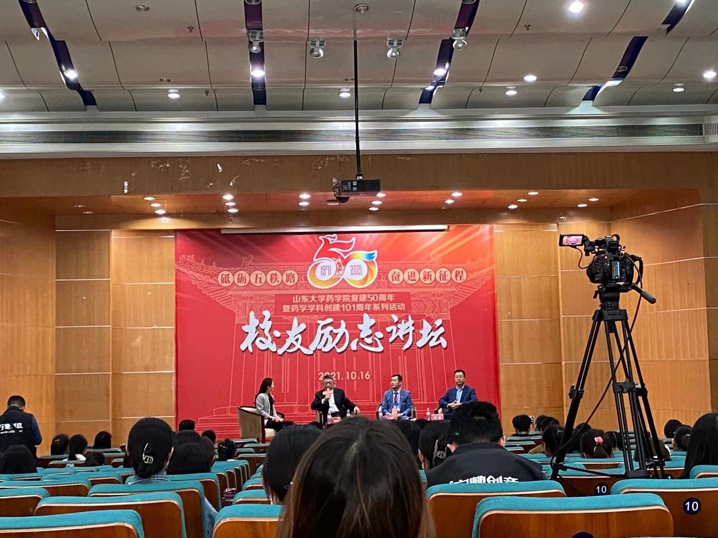 值此山东大学建校百廿,新利体育复建50周年暨药学学科创建101周年之际,10月16日,我院举办了校友励志讲坛活动。本次讲坛邀请新利体育83级校友、国家药监局仿制药一致性评价关键技术研究重点实验室主任、山东省食品药品检验研究院党委书记李军,新利体育95级校友、艾隆科技董事兼总经理许海成,新利体育99级校友、山东省立第三医院院务部主任、“全国抗击新冠肺炎疫情先进个人”宋超回到校园,分享其我校故事,讲述其我校情怀。新利体育党委书记王秋生,副书记张慧、王巍巍,团委书记李冬以及新利体育辅导员参加本次活动。活动采取线上线下相结合的方式,共计一千余人参加。