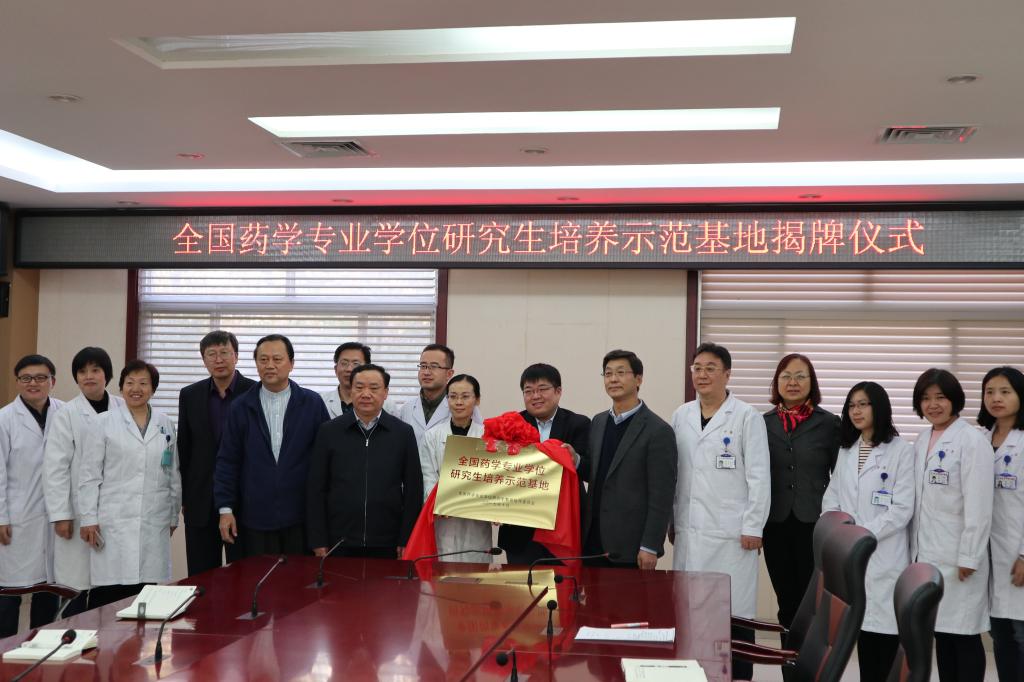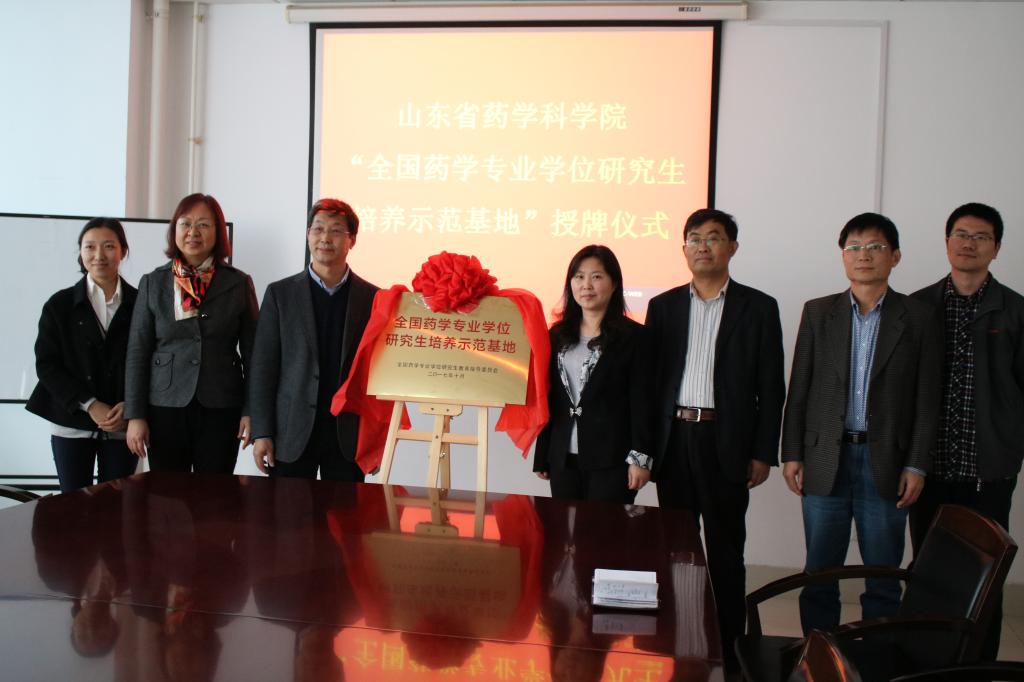 2017年11月13日及14日下午新利体育受全国药学专业学位研究生教育指导委员会的委托,为山东省药学科学院及山东省千佛山医院授予“全国药学专业学位研究生培养示范基地”牌匾。山东省药学科学院院长张岱州、副院长张祚顺、刘传永、段崇刚,山东省千佛山医院院长、党委书记孙洪军、副院长蒋仲敏,新利体育院长刘新泳、副院长张建出席仪式。张岱州、孙洪军、刘新泳分别代表双方为实践基地揭牌。